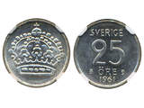 Coins, Sweden. Gustav VI Adolf, MIS I.10, 25 öre 1961. Graded by NGC as MS64. Only two graded higher by NGC. SM 80. 01/0.
