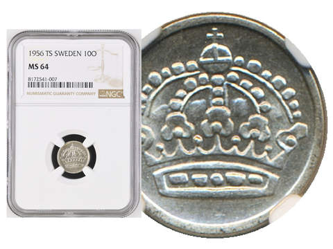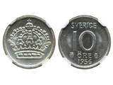 Coins, Sweden. Gustav VI Adolf, MIS I.5, 10 öre 1956. Graded by NGC as MS64. SM 97. 01/0.
