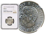 Coins, Sweden. Gustav VI Adolf, MIS I.6, 1 krona 1957. Graded by NGC as MS64. SM 33. 01/0.