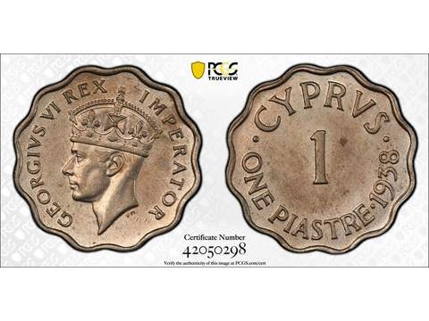 Cypern George VI (1936-1952) 1 piastre 1938, PCGS AU55