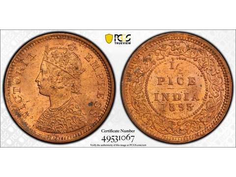 Indien Queen Victoria (1837-1901) 1/2 pice 1895, UNC, PCGS MS64RB