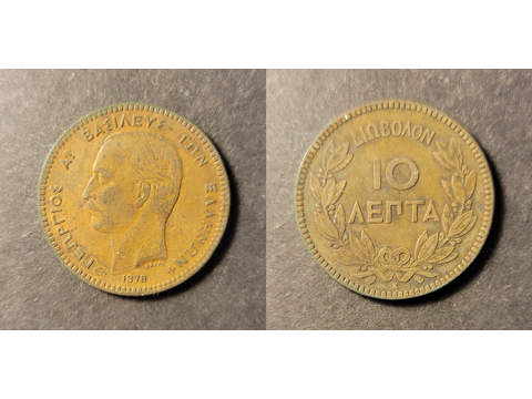 Greece George I (1863-1913) 10 lepta 1878, VF-XF