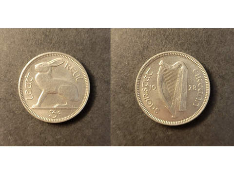 Irland 3 pence 1928, UNC