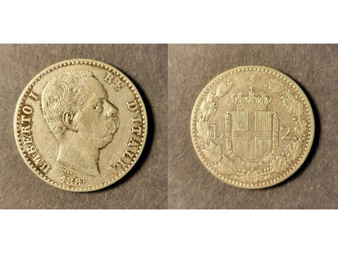 Italy Umberto I (1878-1900) 2 lire 1885, VF Key date!