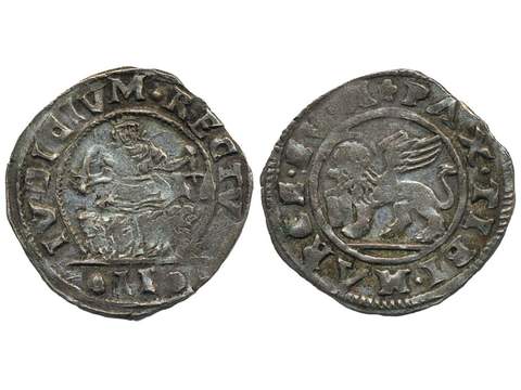 Coins, Italy, Venice. 2 gazette ND. Anonymous coinage. Obv: Ivdicivm Rectvm. Rev: Pax Tibi Marce. 1.32 g. VF-XF.