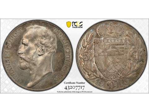 Liechtenstein Johann II (1858-1929) 5 kronen 1915, AU/UNC PCGS MS62