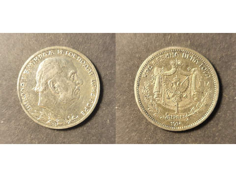 Montenegro Nicholas I (1860-1918) 1 perper 1914, AU lätt rengjord