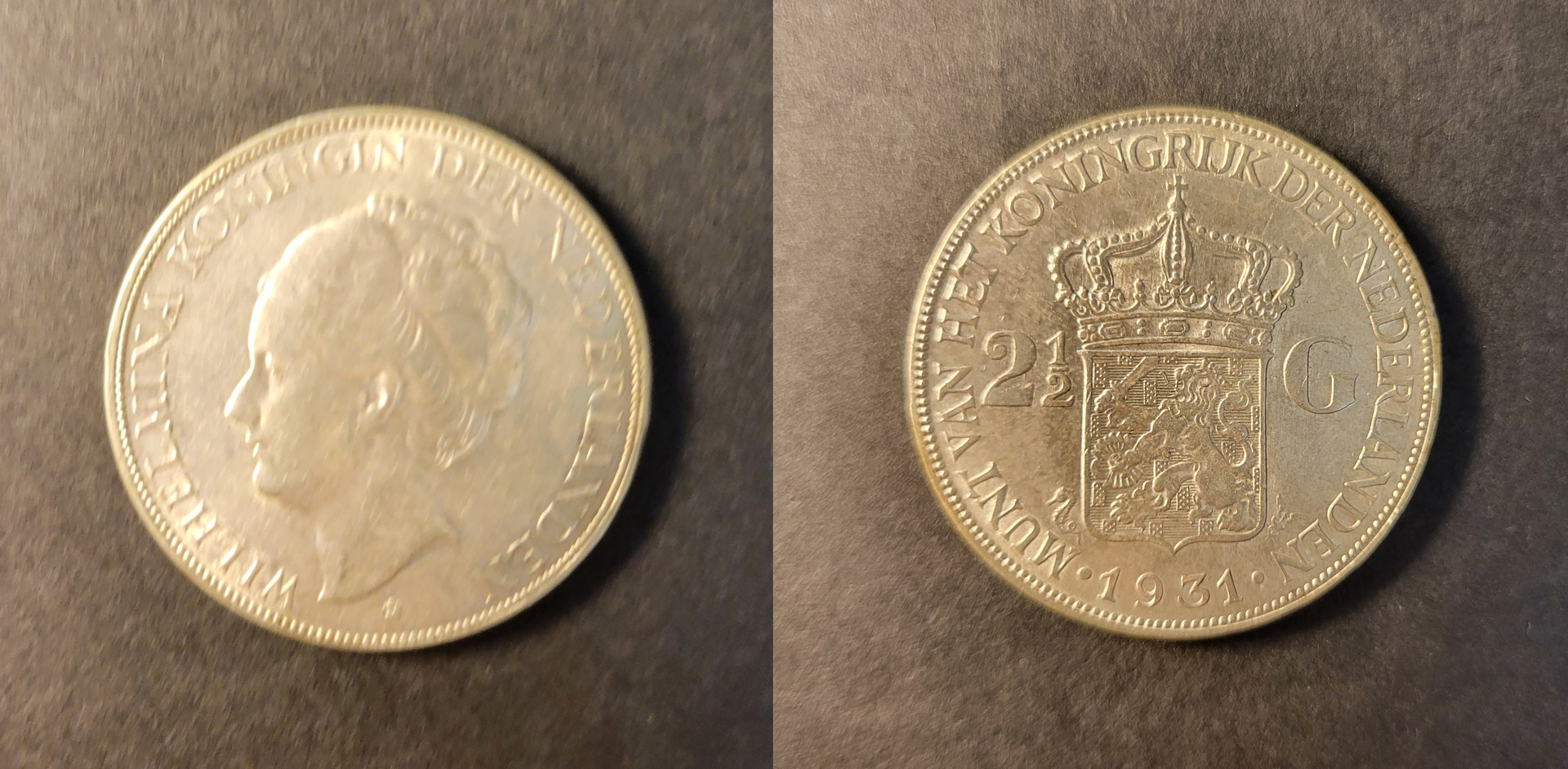 Nederländerna Wilhelmina (1890-1948) 2½ gulden 1931, AU/UNC
