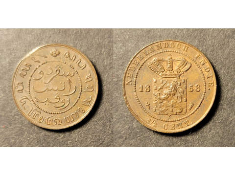Nederländska Kolonier Netherlands East Indies 1/2 cent 1858, AU/UNC