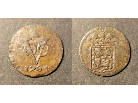 Nederländska Kolonier Netherlands East Indies West Friesland 1 duit 1764, XF Scarce!