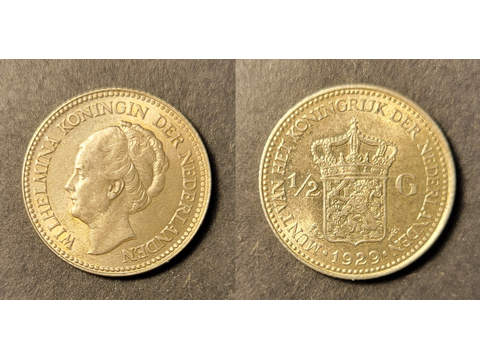 Netherlands Wilhelmina (1890-1948) 1/2 gulden 1929, UNC