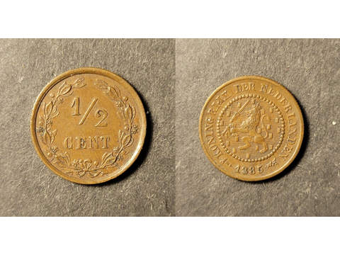Netherlands Willem II (1840-1890) 1/2 cent 1885, VF-XF