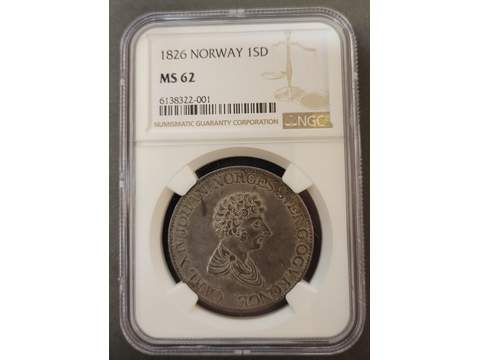 Norge Karl XIV Johan 1 speciedaler 1826, god 01, graderad av NGC som MS62