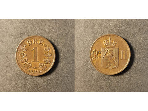 Norge Oscar II (1872-1905) 1 øre 1902, 01