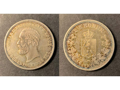 Norge Oscar II (1872-1905) 2 kroner 1902, 01, tonad