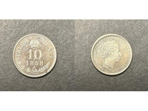 Österrike Franz Joseph I (1848-1916) 10 kreuzer 1858, UNC