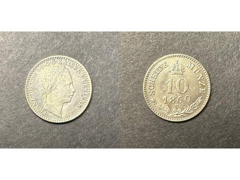 Österrike Franz Joseph I (1848-1916) 10 kreuzer 1860 V, UNC