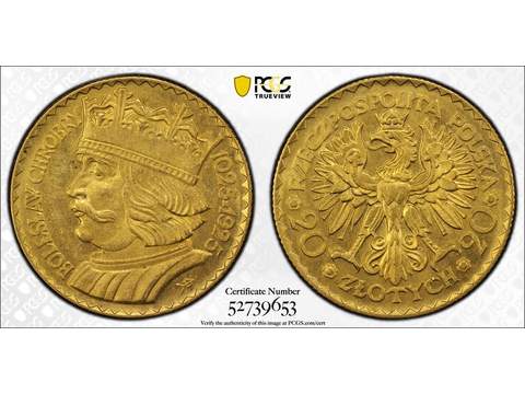 Polen 20 zlotych 1925, UNC, PCGS MS64