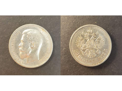 Russia Nicholas II (1894-1918) 50 kopeks 1912, AU/UNC