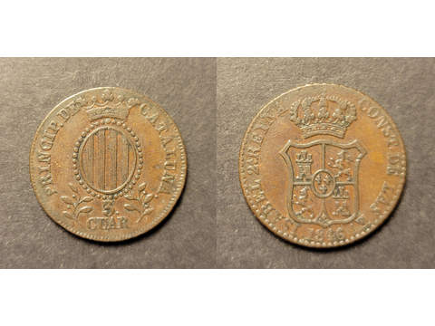 Spain Catalunya 3 cuartos 1846, VF-XF