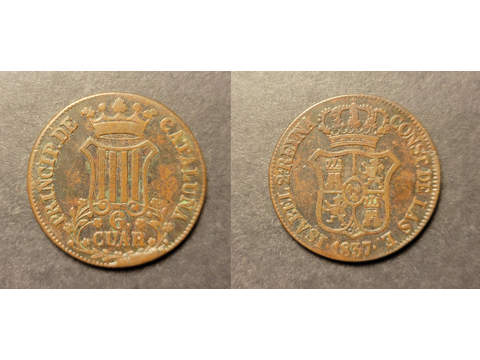 Spain Catalunya 6 cuartos 1837, VF