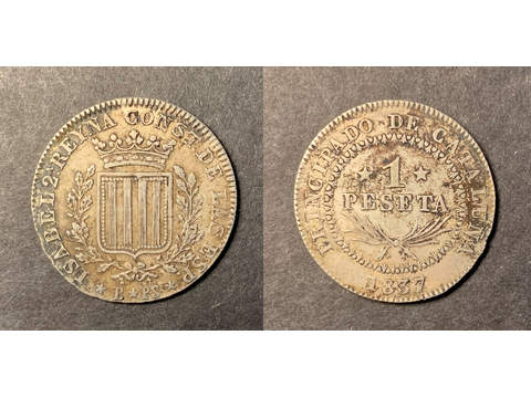 Spanien - Barcelona 1 peseta 1837, VF-XF