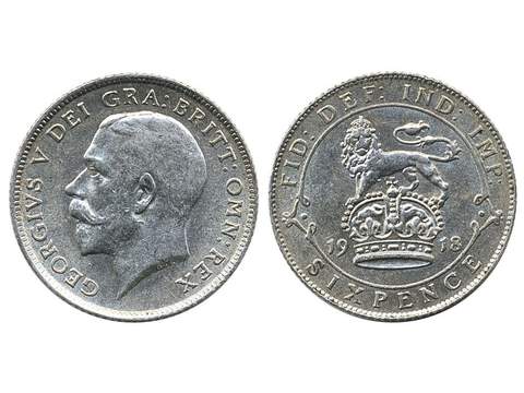 Coins, Great Britain, England. George V, Spink 4014, 6 pence 1918. XF.
