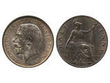 Coins, Great Britain, England. George V, Spink 4056, 1/2 penny 1925. Much red lustre, …