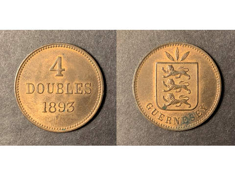 Storbritannien - Guernsey 4 doubles 1893, UNC, mycket röd lyster