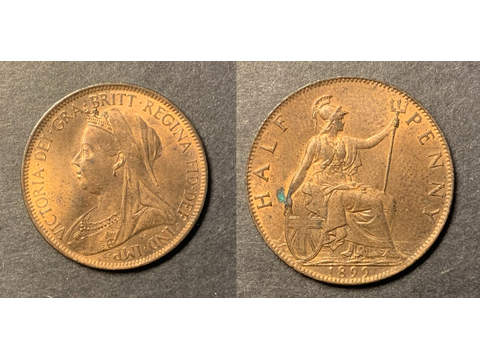 Storbritannien Queen Victoria (1837-1901) 1/2 penny 1899, UNC, liten ärgfläck