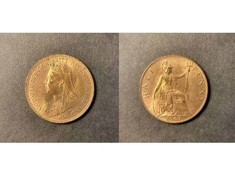 Storbritannien Queen Victoria (1837-1901) 1/2 penny 1901, UNC full röd lyster