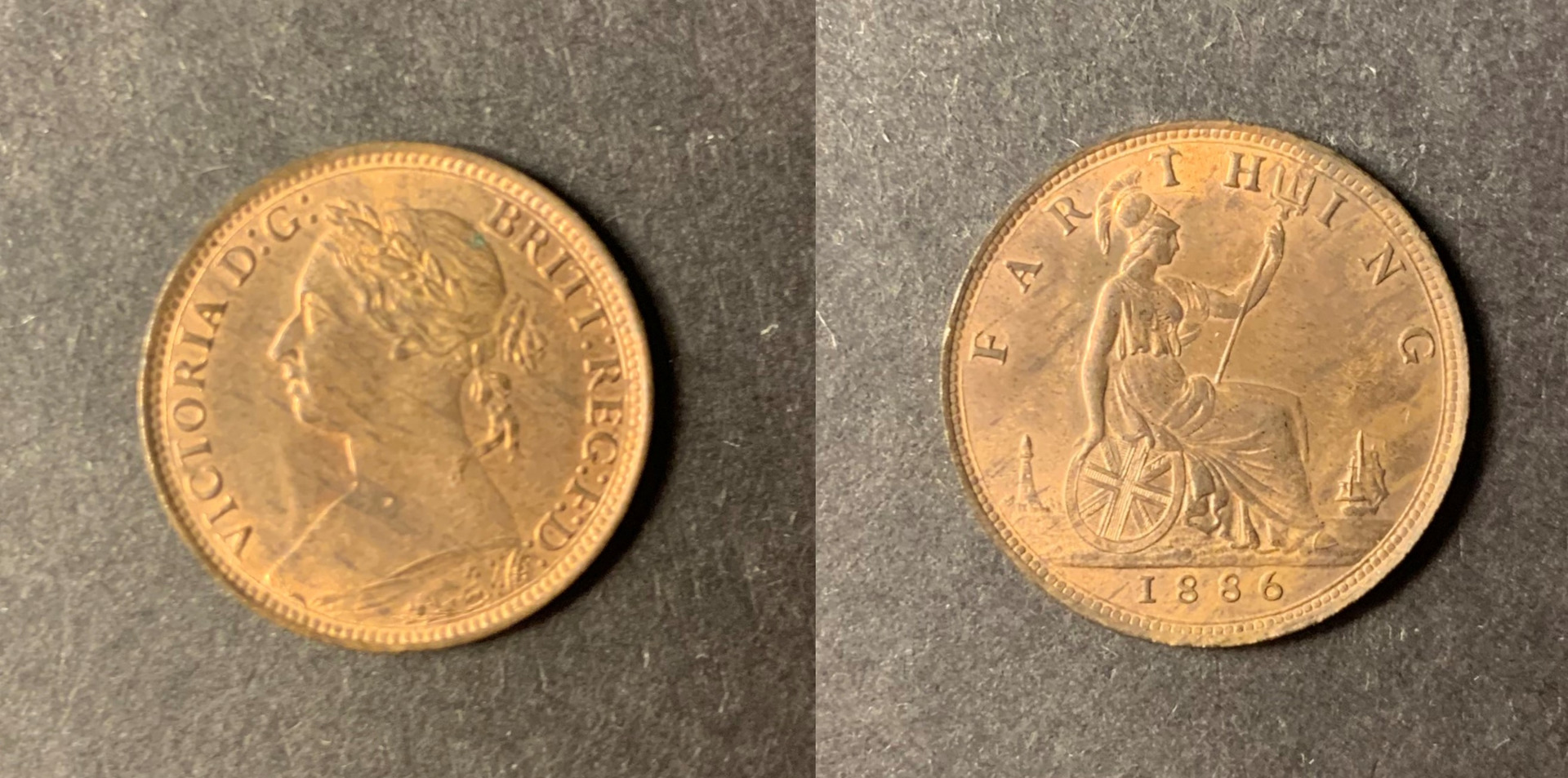 Storbritannien Queen Victoria (1837-1901) 1 farthing 1886, UNC med röd lyster
