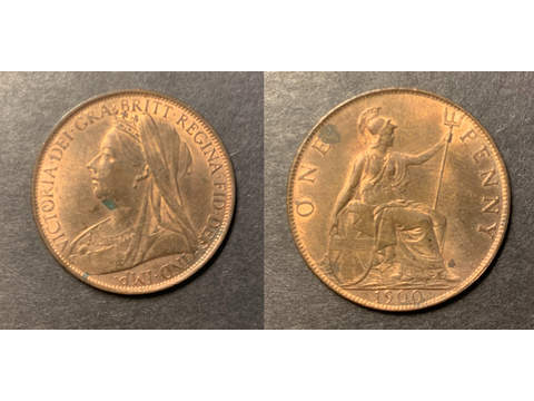 Storbritannien Queen Victoria (1837-1901) 1 penny 1900, UNC mycket röd lyster