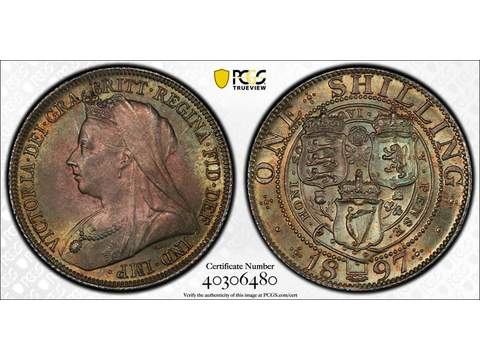 Storbritannien Queen Victoria (1837-1901) 1 shilling 1897, UNC, PCGS MS65 tonad
