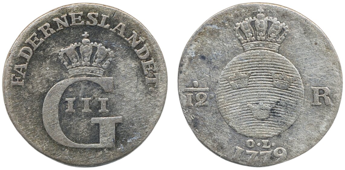 Coins, Sweden. Gustav III, SM 91, 1/12 riksdaler 1779. 3.86 g. Stockholm. 1/1+.