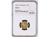 Coins, Sweden. Oskar II, MIS I.2a, 10 kronor 1874/3. Graded by NGC as MS65. SM 25b. SG …