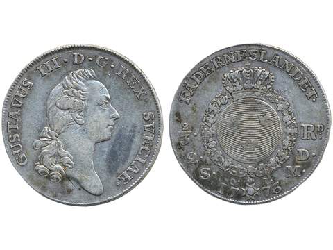 Coins, Sweden. Gustav III, SM 55, 2/3 riksdaler 1776. 19.43 g. Stockholm. Minor adjustment marks and scratches. 1+.