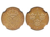Coins, Sweden. Gustav V, MIS I.3, 1 öre 1911. Graded by NGC as MS64 BN. 01/0.