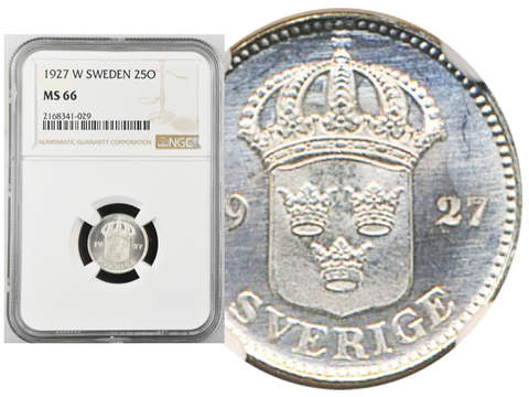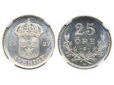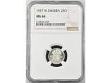 Coins, Sweden. Gustav V, MIS I.8, 25 öre 1927. Graded by NGC as MS66. 0.