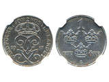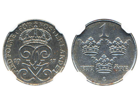 Coins, Sweden. Gustav V, MIS II.1, 1 öre 1917. Graded by NGC as MS63. 01/0.