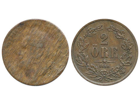 Coins, Sweden. Karl XV, SM 66, 2 öre 1866. 3.22 g. Layered material. SMB 75. MIS 8b. 1/1+.