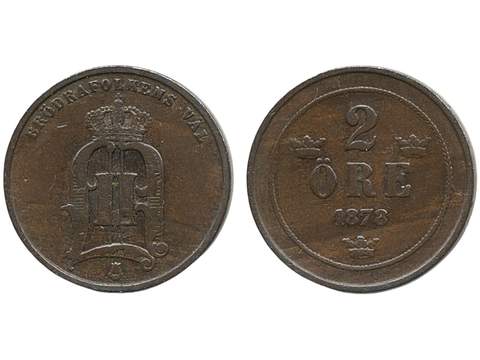 Coins, Sweden. Oskar II, MIS I.5, 2 öre 1878. 1.