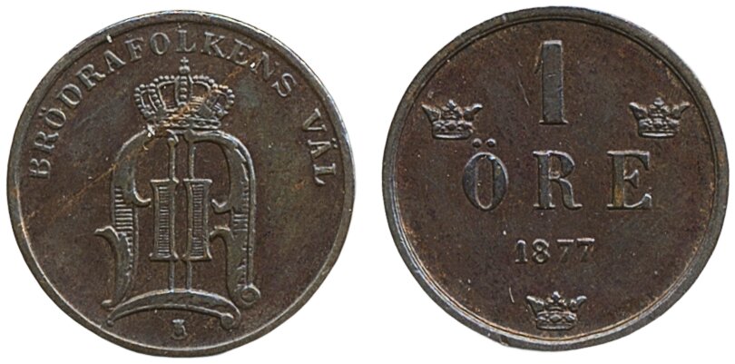 Coins, Sweden. Oskar II, MIS II.1a, 1 öre 1877. 01.