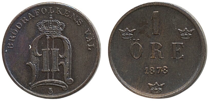 Coins, Sweden. Oskar II, MIS II.2, 1 öre 1878. 01.