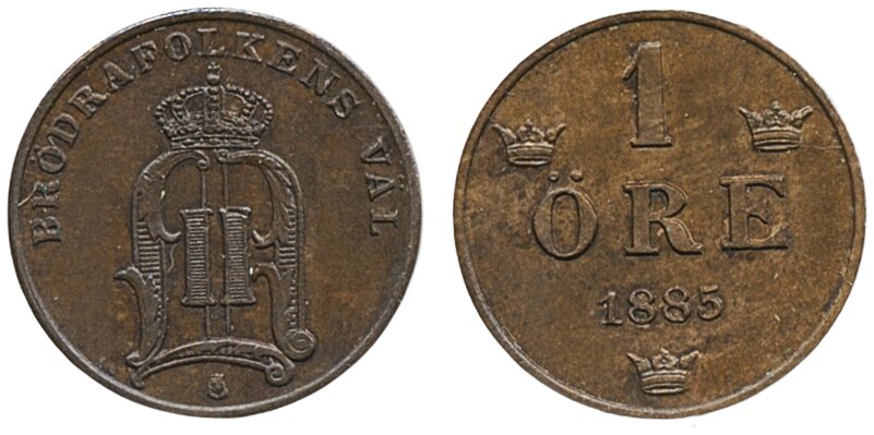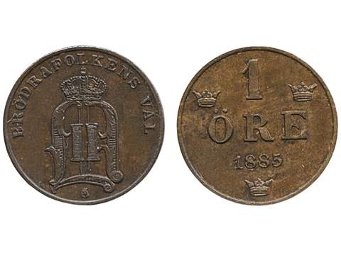 Coins, Sweden. Oskar II, MIS III.8a, 1 öre 1885. 01/0.