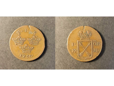 Sverige Fredrik I (1720-1751) 1 öre KM 1750, 1+