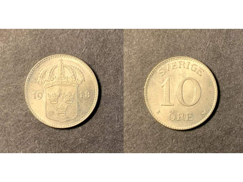Sverige Gustav V (1907-1950) 10 öre 1918, 01/0