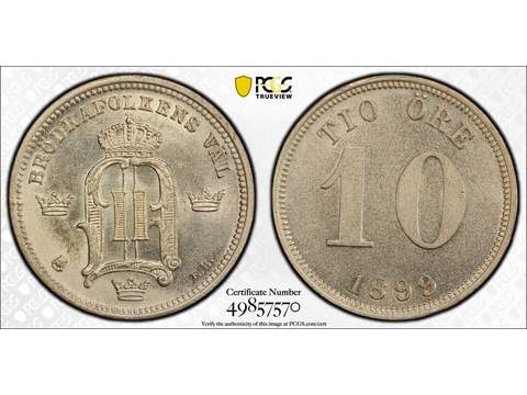 Sverige Oscar II (1872-1907) 10 öre 1899, 01/0, PCGS MS63