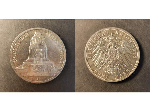 Tyskland Sachsen Friedrich August III (1904-1918) 3 mark 1913, AU/UNC