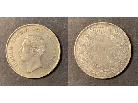 Tyskland Wilhelm I (1816-1864) 1 gulden 1838, VF-XF